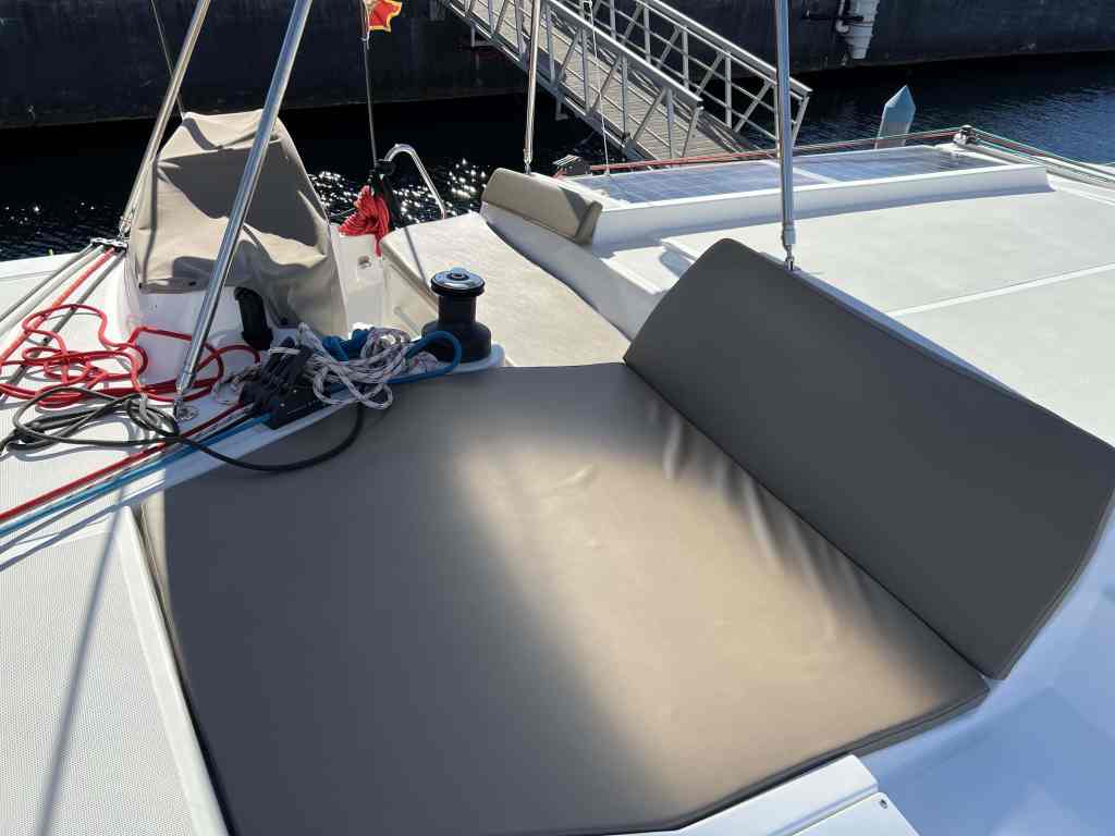 Of our own accord, we enlisted the help of MarinArt to add some features to Sabática. We actually started working with them before we had even left California to make some things that were missing – a couple of “blackout” shades for cabin windows and some deck cushions. They did a great job matching colors and such.
