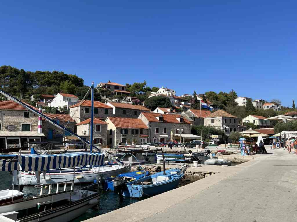 We first headed to the island of Šolta and the quaint town of Maslinica. We stayed at the nice, small Marina Maslinica (or Martinas Marchi marina). We were struck by the clearest water we have yet to see. You could even see the full slime lines! Beautiful. Nice swimming here too. We were docked directly across from the pretty hotel that was a refurbished castle. Pretty place that we would definitely go back to.