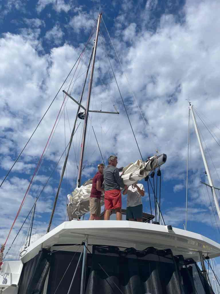 Time here also afforded Conor, with the help of Kyle and Sean, to fix our sail bag. Conor got to haul up the mast again, which I think he enjoys. We were excited to have this fixed so we could really sail again upon our departure.