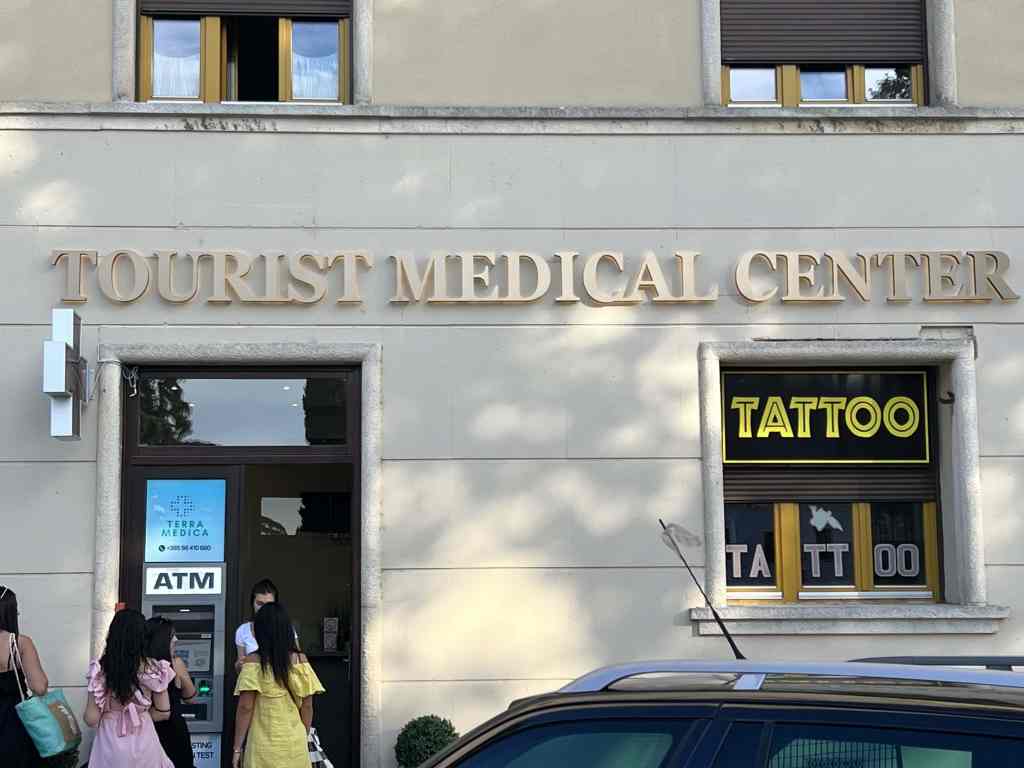 Side note: It was interesting but did not surprise us to see a “tourist medical center.” It was the first one we had actually seen, and we wish we had seen one back in Kaštela. When Laura first arrived to the boat, she developed what turned out to be a sinus infection. We spent most of a day trying to get her in to see a doctor. Long story, but we learned that in Croatia, medical clinics will not see tourists (because they are not set up to accept payments). This might work differently in bigger cities, but we learned we could only go to an emergency room / hospital. Once again, we found ourselves a fabulous taxi driver who stuck with us until mission was accomplished!