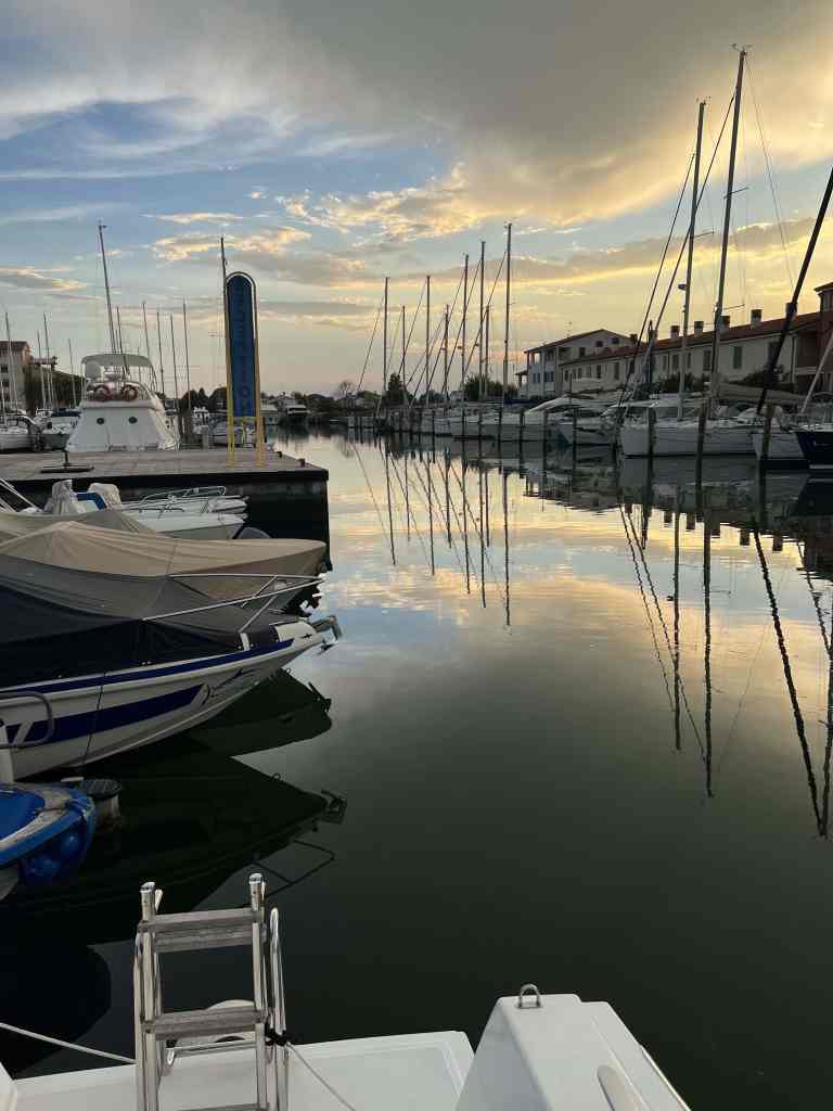 Getting in to our marina Darsena dell’Orologio was a special experience. We turned off the sea into a channel that led inland. We kept winding through this narrow, shallow channel for what felt like forever until we eventually came to the entrance to the marina. The channel kicked up Conor’s blood pressure already – at times it was only 2.1 meters deep and Sabática has a draft of 1.1 meters – but when we saw the marina entrance, we just shook our heads. Turns out the entrance was 7.3 meters wide and Sabática is 6.72 meters wide without fenders. That left Conor with a difference of 30 cm of spare room on either side (without fenders, which of course we had). I was ready with roving fenders, but Conor nailed it and took us straight through the middle of that tight passageway.