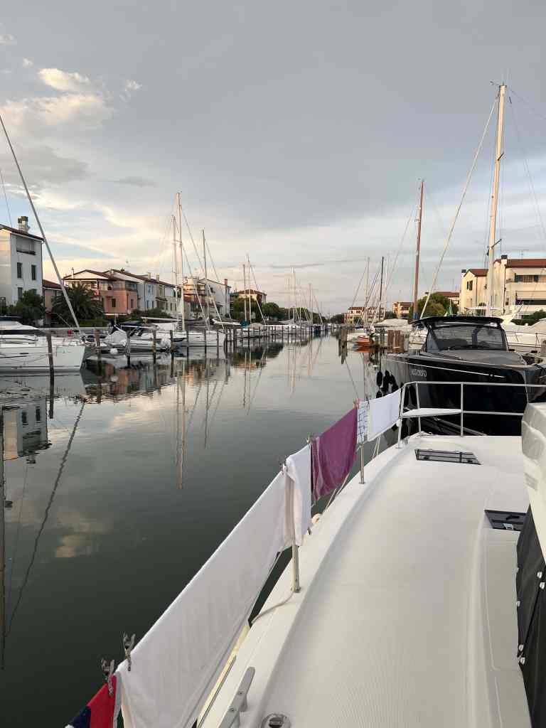 Conor could also finally wash the boat after our long stint in Venice and time in drought-ridden Istria to remove bugs, leaves, etc. I had mounds of laundry to attend to and, fortunately, there was one washing machine in the women’s bathroom available for use. There was not one in the men’s bathroom. Don’t get me started.