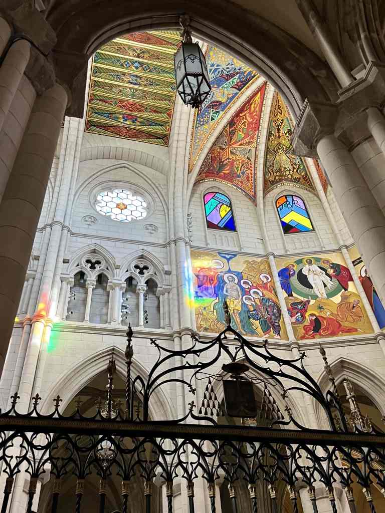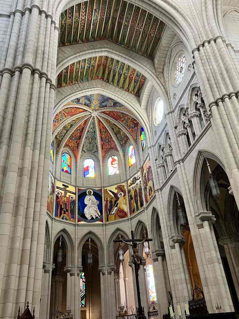 Almudena Cathedral – the most important religious building in Madrid. It’s the seat of the Roman Catholic archdiocese in Madrid and happens to sit opposite the Royal Palace. At this point in time, I often think “You’ve seen one cathedral, you’ve seen them all.” And then you walk into yet another one that is completely different than any other you’ve ever seen before. The bright colors in here were amazing. Also amazing that it took 100 years for this cathedral to get built.