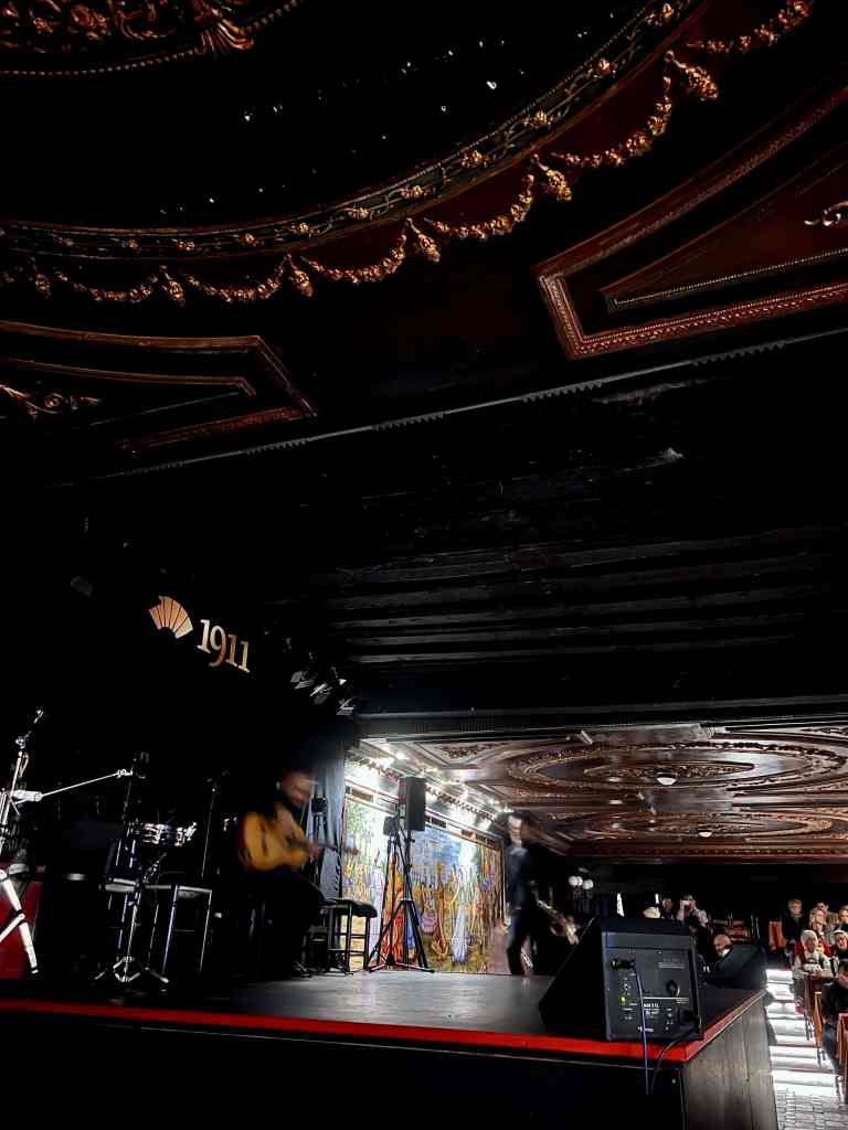 Flamenco show – a wonderful art form in southern Spain that began back in the late 1700s. It combines music (mostly guitar), singing, and dancing and simply must be experienced in person for the depth of emotion it exudes. Where to see a show? At a traditional tablao. Of course, we ended up at the oldest tablao in Madrid! While all of the performers were wonderful, I especially loved the dancers (myself being a dancer in a former life). The beautiful costumes, the way they used them in their dancing, and the prolonged intensity was very impressive.