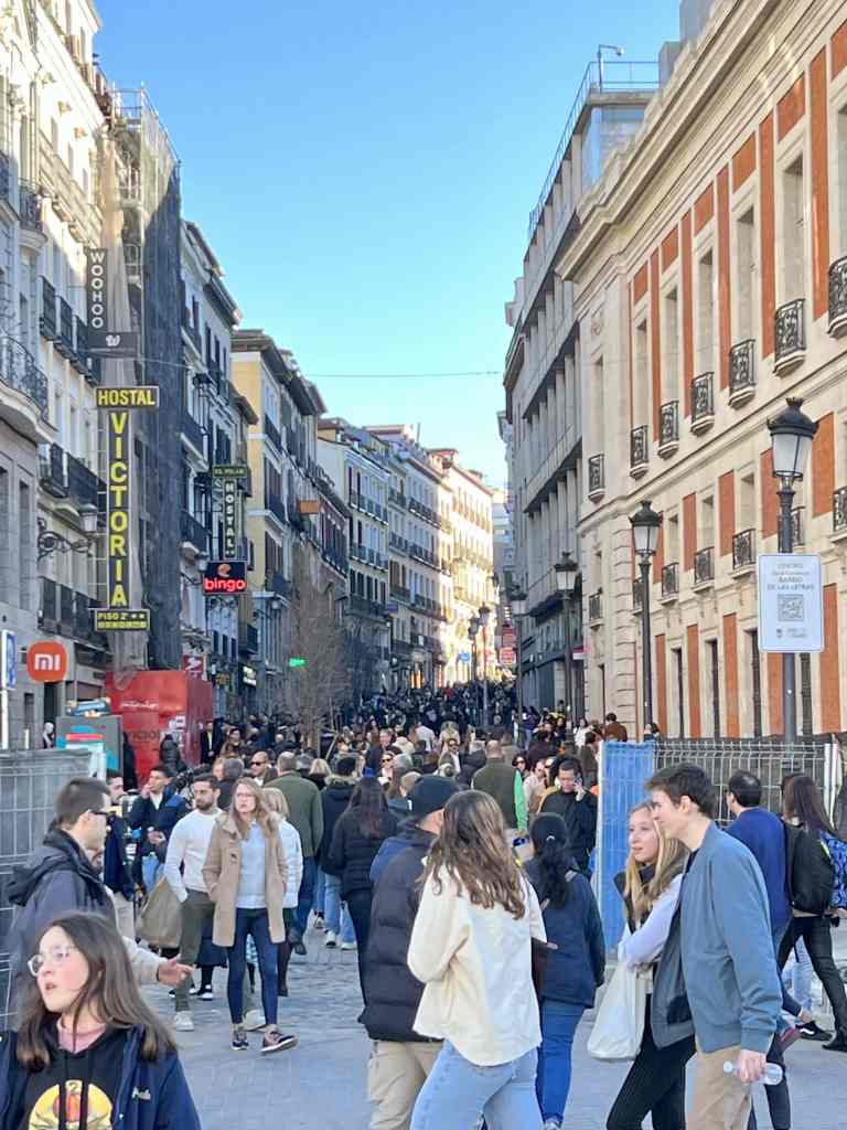 The next thing I’ll say about Madrid is don’t be afraid to stay at a hostal. Conor had booked our hotel for its location, and when we arrived we were a bit dubious. We had to take a tiny elevator up to the third floor to find the check-in. Turns out our hotel was actually a “hostal,” not to be confused with a “hostel.” I’ve never stayed in a student hostel before, nor was I keen to. We learned that “hostal” is pretty unique to Spain and is a word that essentially means a budget hotel. Whew. It was fabulous and we can highly recommend Hostal Royal Cruz. It took up half of a floor of the building and maybe had a dozen rooms. You couldn’t beat the central location, the friendly staff, and the comfortable and super clean rooms. We’re talking cleaned spotless every day. And they had a cute little common space with snacks and a kitchen that was really convenient for us when we had to work. Walking around we saw hostals everywhere. In our building alone there must have been at least ten of them.
