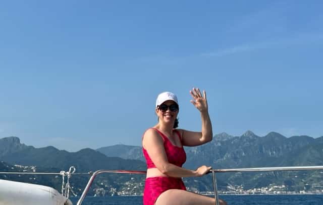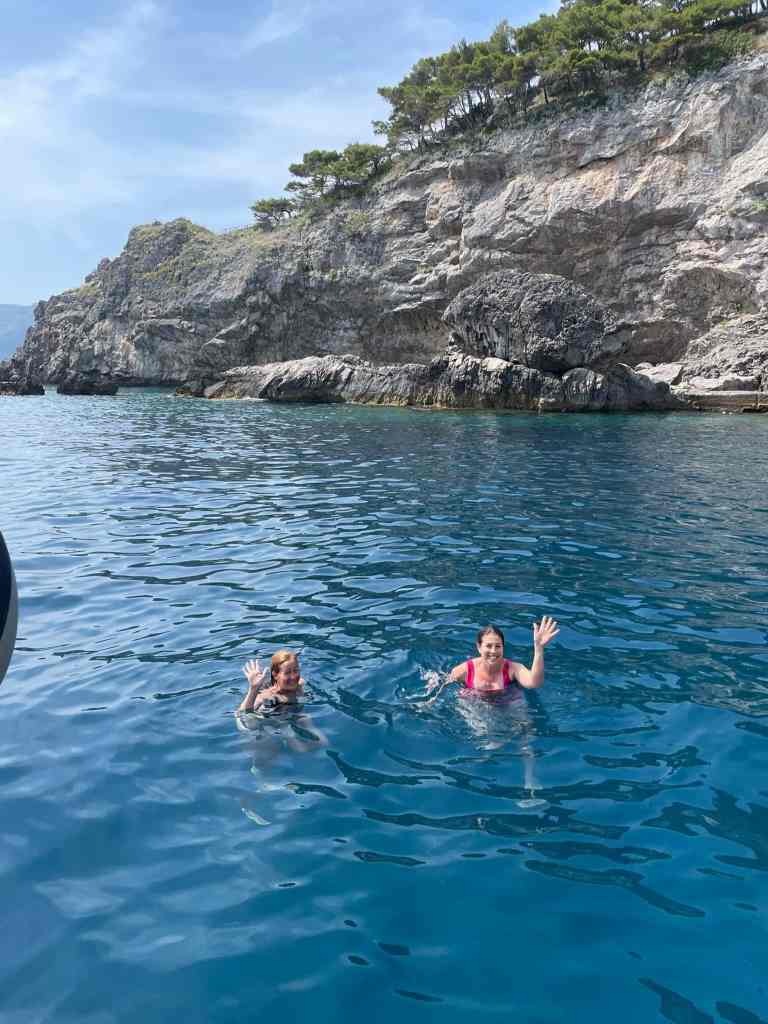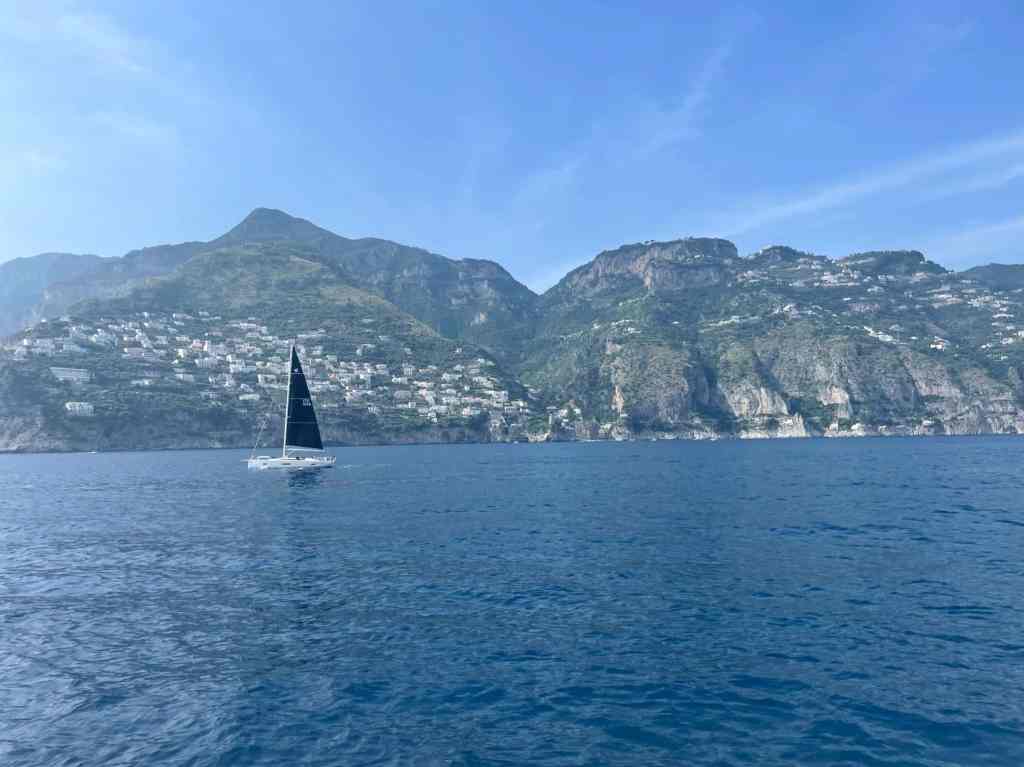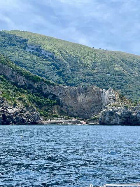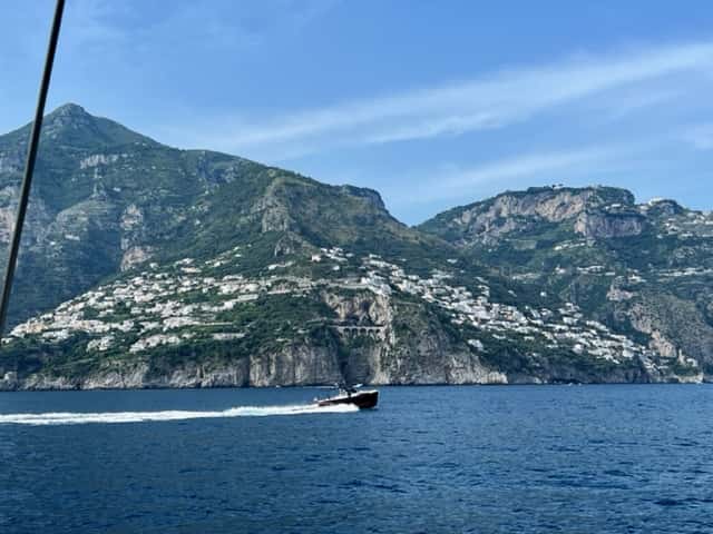 The following day allowed for a smooth cruise all along the stunning Amalfi Coast to Salerno. We had a fabulous anchoring stop for lunch and a swim. I must say – if you ever visit the Amalfi Coast, make sure to get out on a boat! From the towns, you get beautiful views of the ocean, but from the sea you get the full view of the beautiful coastline which includes dramatic green mountains, towns built into them, and caves cut out of them.