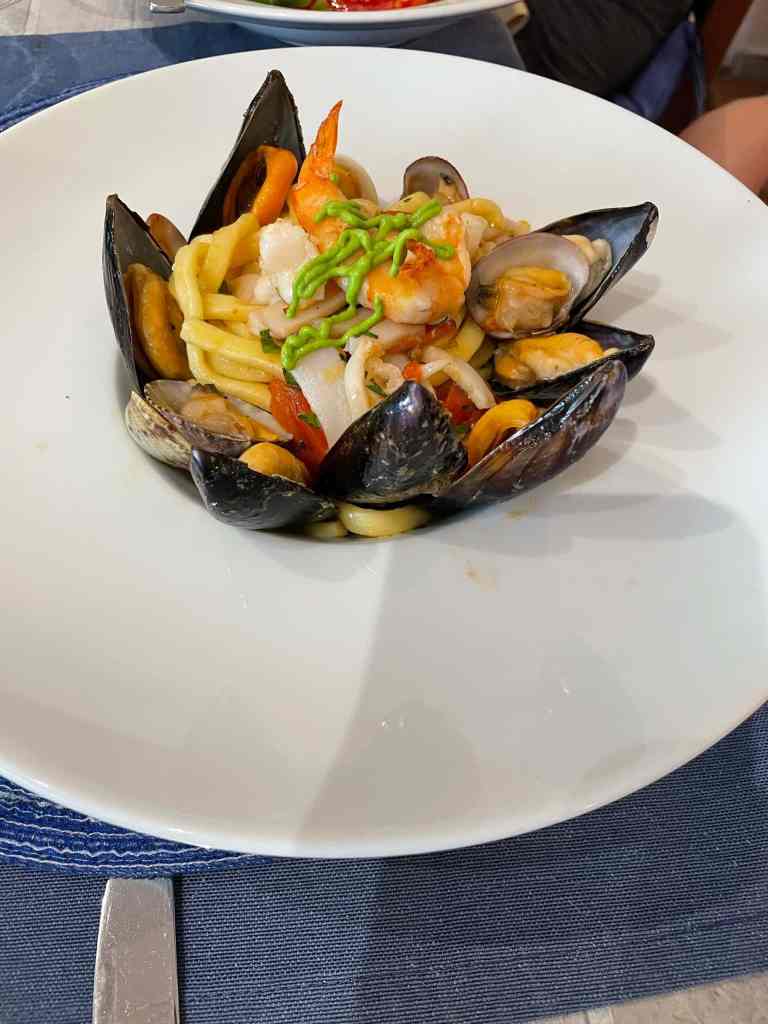 So the days were very relaxed, and the evenings involved fabulous dinners, sometimes preceded by refreshing aperitivos. We ate well. 🙂 We had the best pastas, amazing pizza, the freshest seafood, and delicious local wines everywhere. Because Italians eat so locally, it’s fun to see what the different area specialties are. We can highly recommend all the restaurants we discovered: