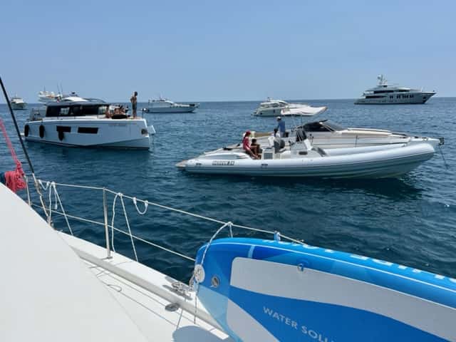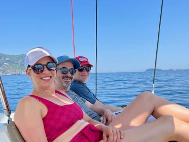 Our second day was a Saturday and was spent anchored in the bay near Sant’Angelo on the south side of Ischia. The bay was flooded with local Italians and their speedboats just out for the sunny day. It was way too crowded for Conor to feel comfortable leaving Sabática and taking the dinghy into town. So, we enjoyed sunbathing, listening to music, chatting, lunch and drinks, all while taking in the main event of the day – people watching! We were living like locals and got a kick out of watching the Italian family dynamics (and making up stories to match what we saw!). It was also a growth day for Conor getting used to being anchored so incredibly close to other boats. Once the crowds left in the evening, we headed into town for dinner.