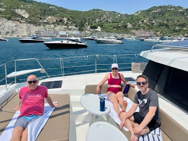 We spent the first afternoon just relaxing and chatting on the docked boat, appreciating the cool breeze and beautiful sunset in Casamicciola.