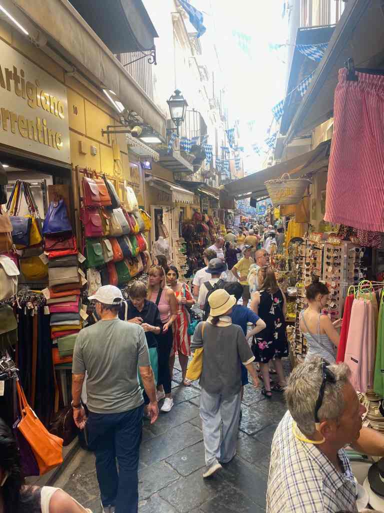 The next day was our time to cross the busy Bay of Naples to Sorrento and enjoy the town. Jon had received a recommendation for a cliffside hotel where we headed for a fancy aperitivo and a fabulous view.