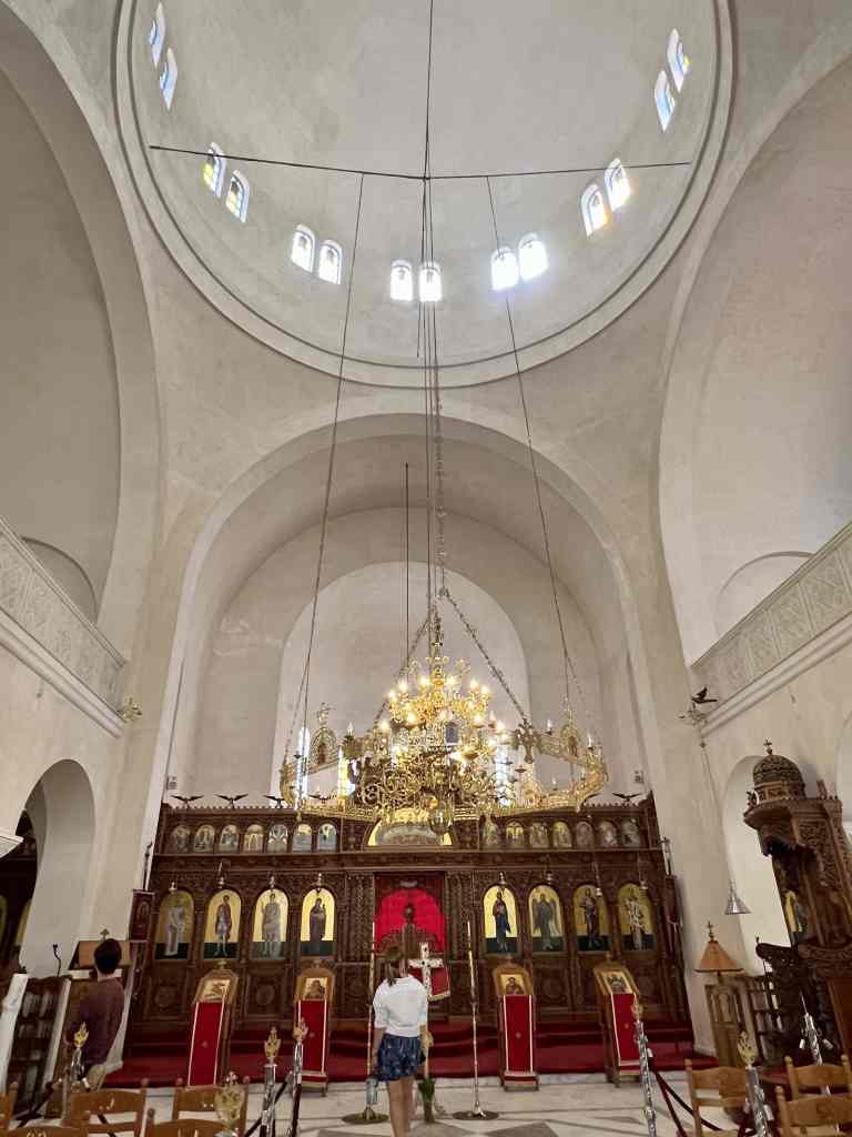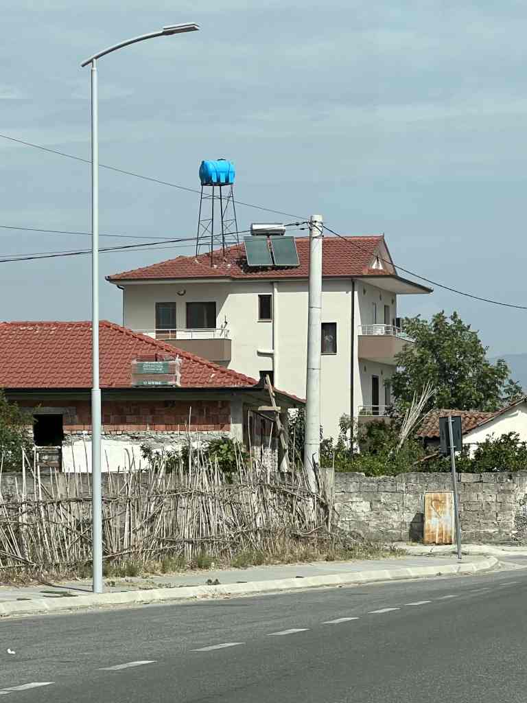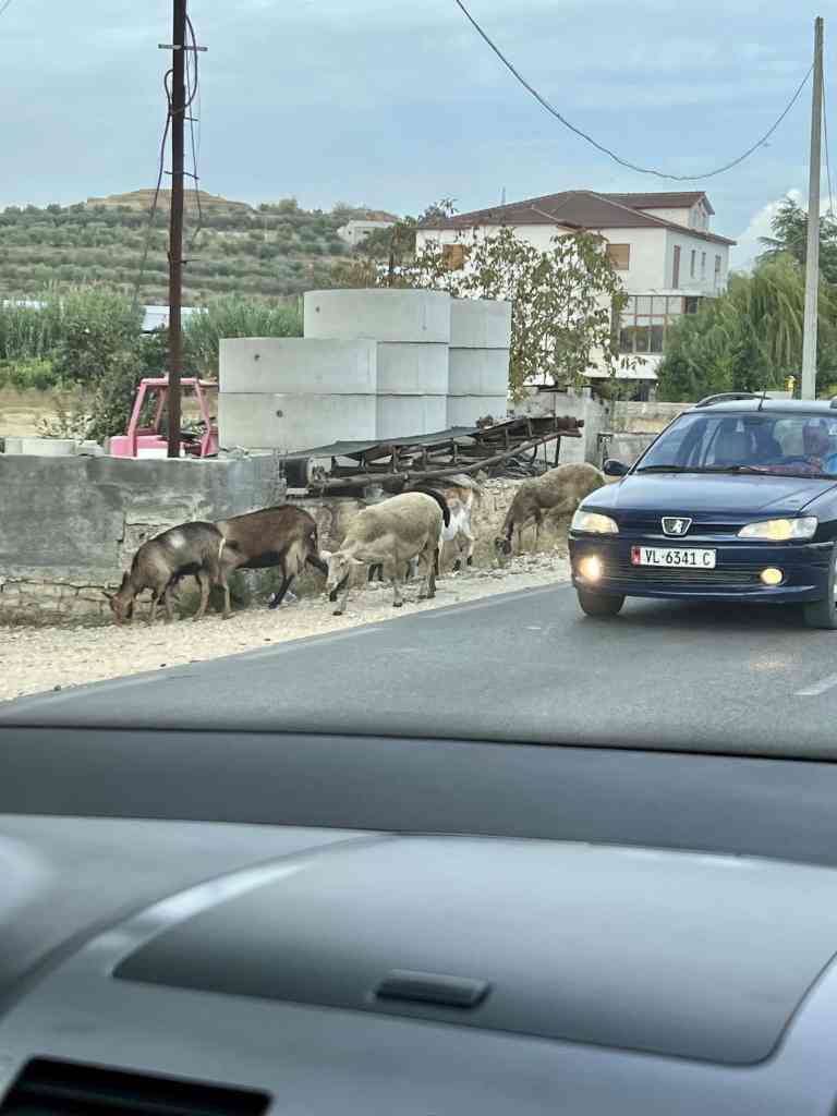 Now, if you’ve read any of my previous posts from this summer, you know that most of our well-intentioned plans get changed. This current plan was to make sure Rory, Maya and Will would make it to the capital city of Tirana to catch their flights back to the USA, and we could exit Albania the following day to make the long crossing over the Adriatic Sea to Italy. We had arrived in Vlorë with time to spare, which was great. We had a day in which we could rent a car and show the kids some of interior Albania. We made the short journey over to the marina in Orikum (the only marina for private boats in the country to-date) so we could safely leave Sabática and trek inland. Then, of course, weather conditions changed. A low pressure system rolling in would not allow us to leave Albania when we wanted, and it looked like we’d be delayed for another three days. Plus, it was extremely hot. So, Plan B…We had everyone pack up right away (ourselves included) so we could just leave the boat. We booked some AirBnBs, rented a car, and hit the road. Traveling along, you could see just about anything along the side of the road – cows, goats, a man cycling while holding a handful of dead turkeys, olive groves, vineyards, pomegranate trees, lovely hotels, ruins, oil rigs, well-loved cemeteries, and all kinds of modern buildings with funky textures and colors.