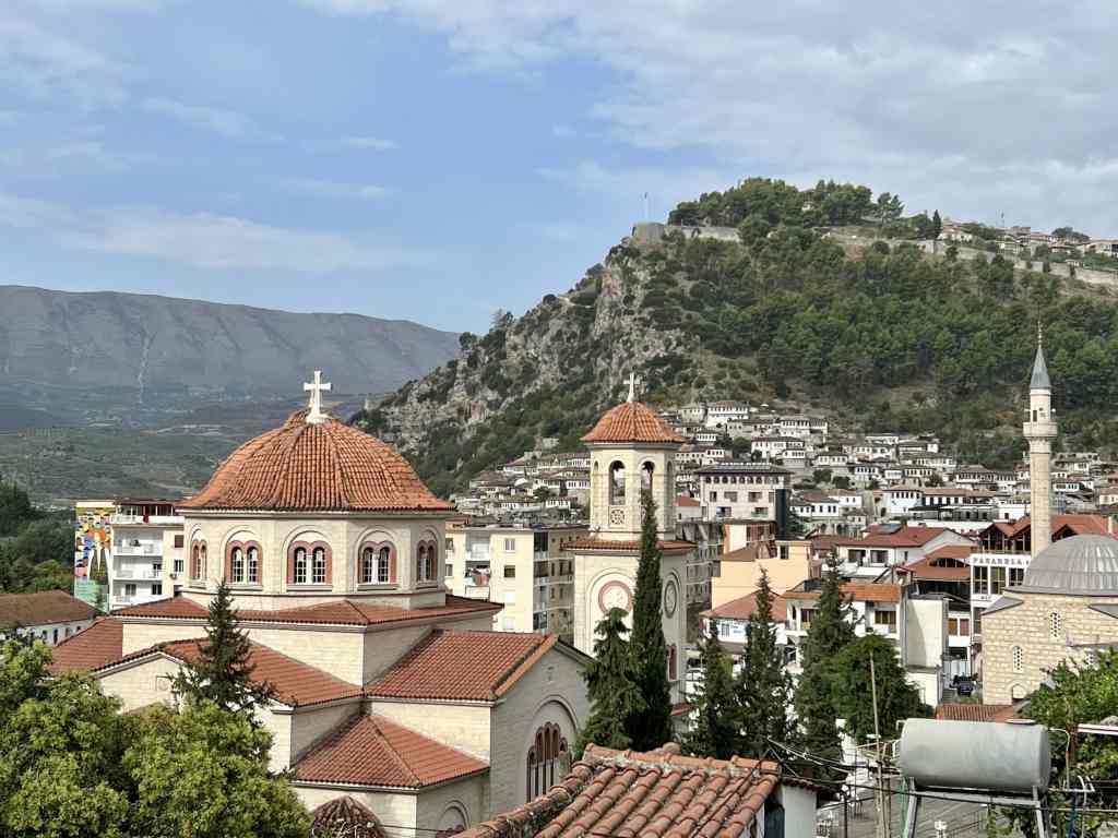 Our adventures first took us to Berat, often considered the prettiest town in Albania. Most tourists seem to visit this UNESCO heritage site, enjoying the Ottoman houses (which give Berat its nickname the “Town of a Thousand Windows”) and the hilltop castle with beginnings dating back to the 4th century BCE. The castle seen today was expanded and reconstructed in the 13th century, and many people still live within the village. We had a special location with our AirBnB directly inside the castle walls!