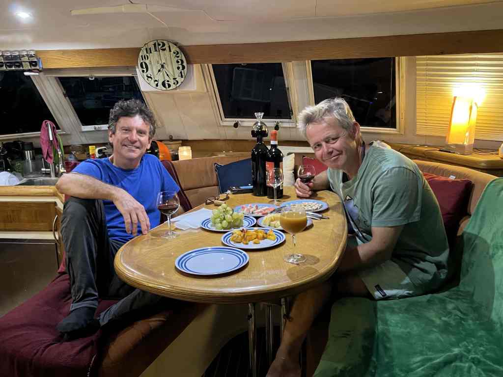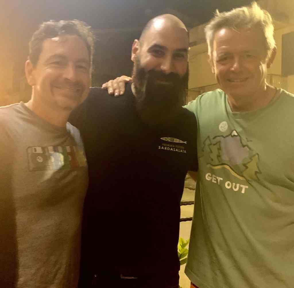 Next, we had some more friends from the US come for a visit. Of course we did! 🙂 We had fun introducing Giovanna and Javier to some boaters at a happy hour, showing them around town and to the beach, as well as taking them to “our” pizzeria. We had yet to visit Sardasalata, and we wanted them to get to meet the friendly restaurant manager, our buddy Francesco. When we arrived, there was a new host who looked like the owner. He didn’t know us at all and told us they were completely booked for the night. Well, he could offer us a tiny table in an odd space away from the main restaurant. Conor happened to see one of the cooks we knew and waved. When Conor asked if Francesco was there, the cook said to wait just a minute. Sure enough, Francesco showed up and gave us huge hugs and welcomes. He chatted to the host for a minute then proceeded to show us to our typical table. Giovanna and Javier were quite impressed. Everyone should have a Francesco. 😉