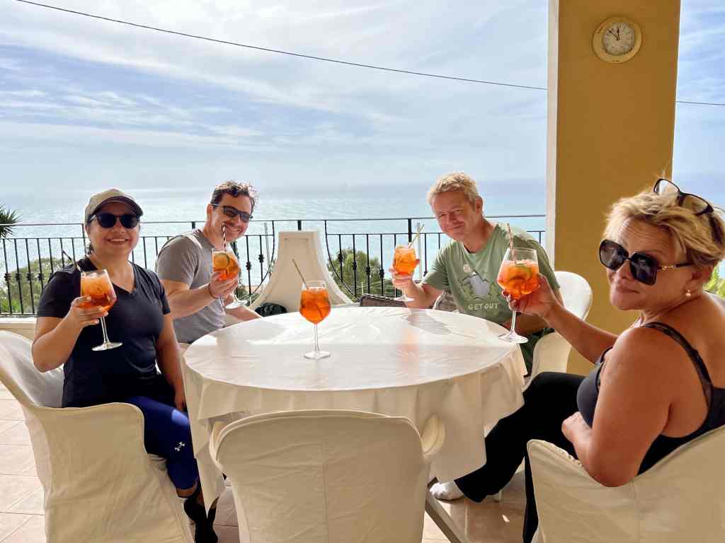 We had another fun experience when walking up and over the hill to see the beautiful Licata cemetery on our way to the beach. We passed by a women in her pickup truck collecting trash on the side of the road because she was fed up with how the locals just tossed and left it there. Conor made a friendly comment and a chat ensued. Klaudia became our new friend and invited us down to her villa for a mid-day drink. We were kind of on a schedule as we had a lot we wanted to do that day, but we looked at each other and felt like “how often do you get this kind of invite?” So, we followed Klaudia to her beautiful villa and she made Aperol spritzes for all of us and told us about herself, her life in Germany, her split time in Licata, and about her many German and Austrian neighbors there. All very interesting. She and I swapped WhatsApp numbers and said we’d meet up again when she returned to Licata in the spring!