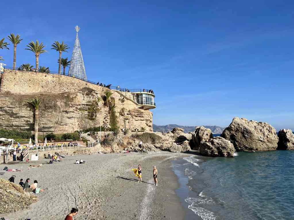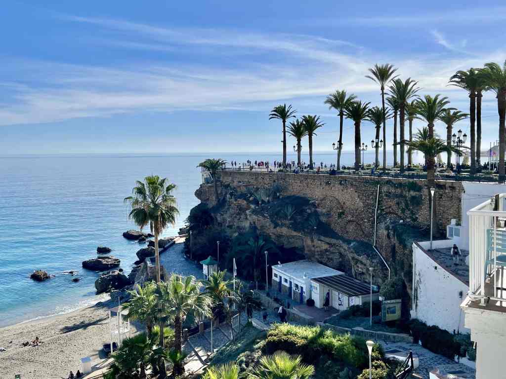 Nerja has a population around 21,000 people, and one of the reasons we chose this town to live in for winter was because it has a very large expat community (about 25% of the population). You will find many people from the UK, Ireland and Scandinavia here. Due to this large expat community and the fact that Nerja is a popular tourist destination all year round, English is widely spoken. We still enjoyed practicing our Spanish and did our best to live like locals. Conor joined a gym, I enjoyed regular long walks along the coast, we worked, we cooked, etc. We also enjoyed the mild winter weather – another great reason we chose this locale. Like any tourist town, Nerja has a plethora of restaurants, shops, and most importantly, beaches – miles of lovely beaches with beautiful clear water.