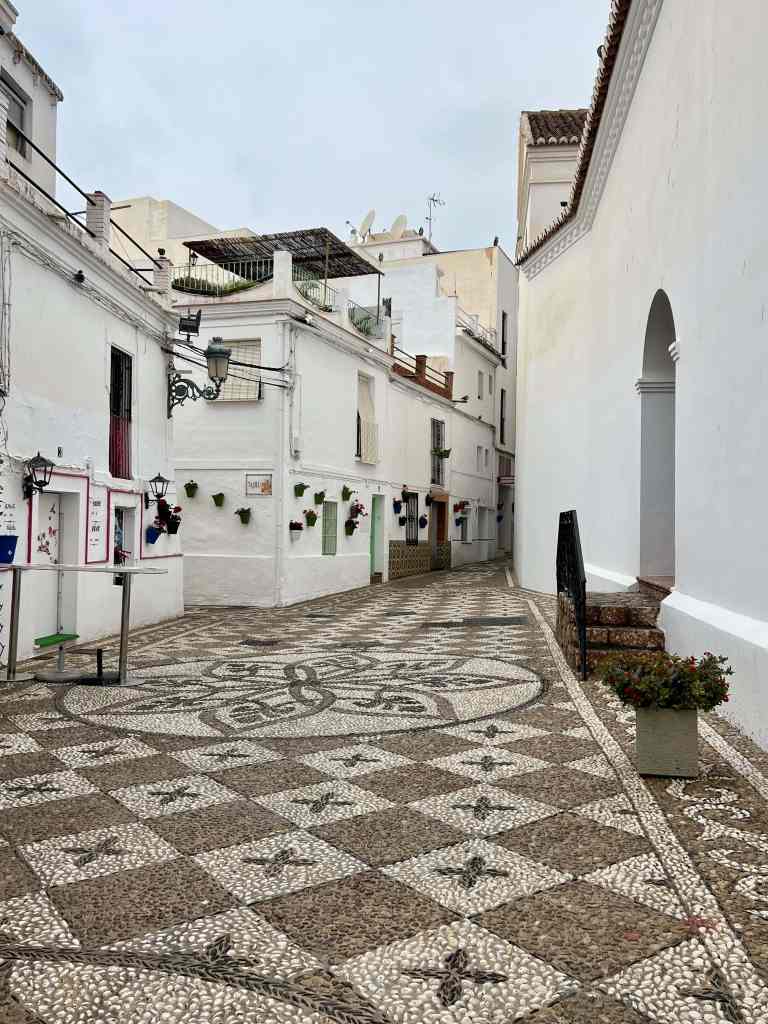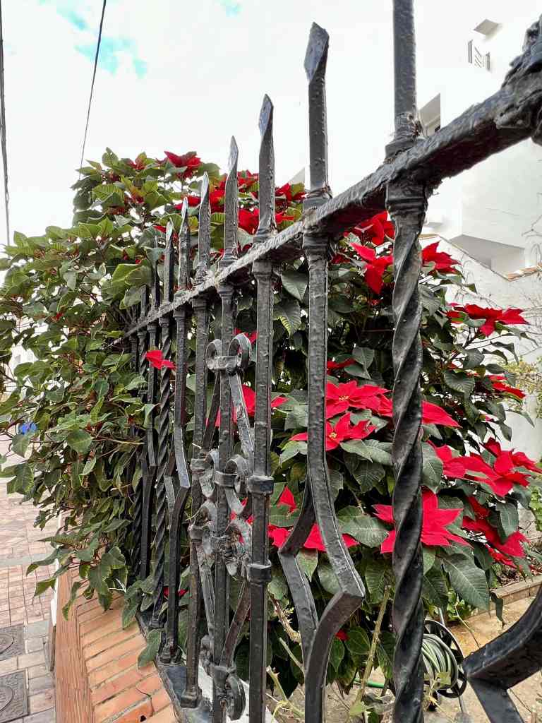 Aside from the views, Nerja is a lovely town itself, nestled between mountains and sea. It was festive for Christmastime and New Years, has some of those amazing stone walkways, and is adorned in beautiful flowers everywhere. You can smell the fresh leather when you pass certain shops, and you can enjoy a cafe con leche or aperitif while watching families, retirees, and everyone in between stroll by.