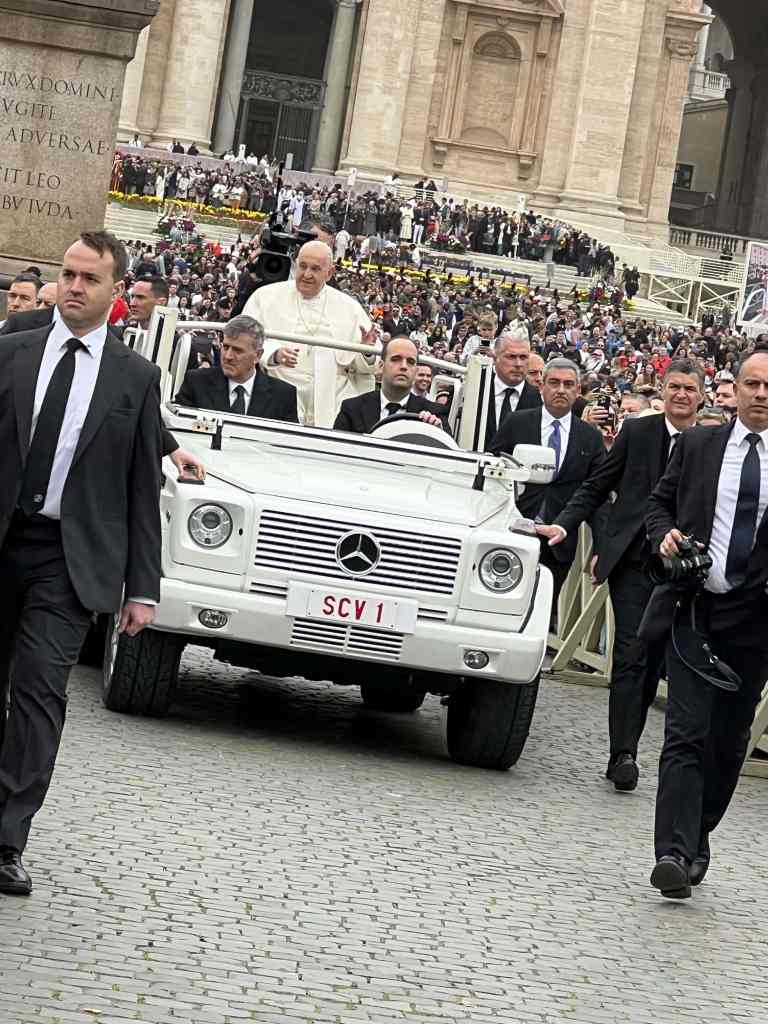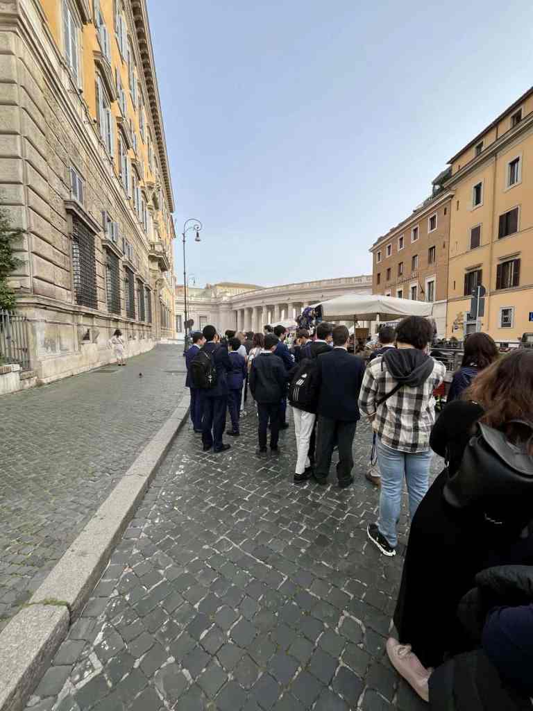 The special: The big event of our trip was attending Easter mass in the Vatican with the Pope. Rory scored us tickets and we joined the other 60,000 attendees in St. Peter’s Square. We had a perfect day for it – it wasn’t sunny or hot or cold. After standing in a tremendously long line to pass through security, we entered the beautiful space and chose a spot in the second half of the area but right along the railing with an unobstructed view. Mass began at 10am and we stood for two and a half hours for the full event, which included the mass itself, Pope Francis’s ride around in his “Popemobile” to see the crowds of people, and then his “urbi et orbi” speech which is his traditional Easter message and blessing to the city and the world.