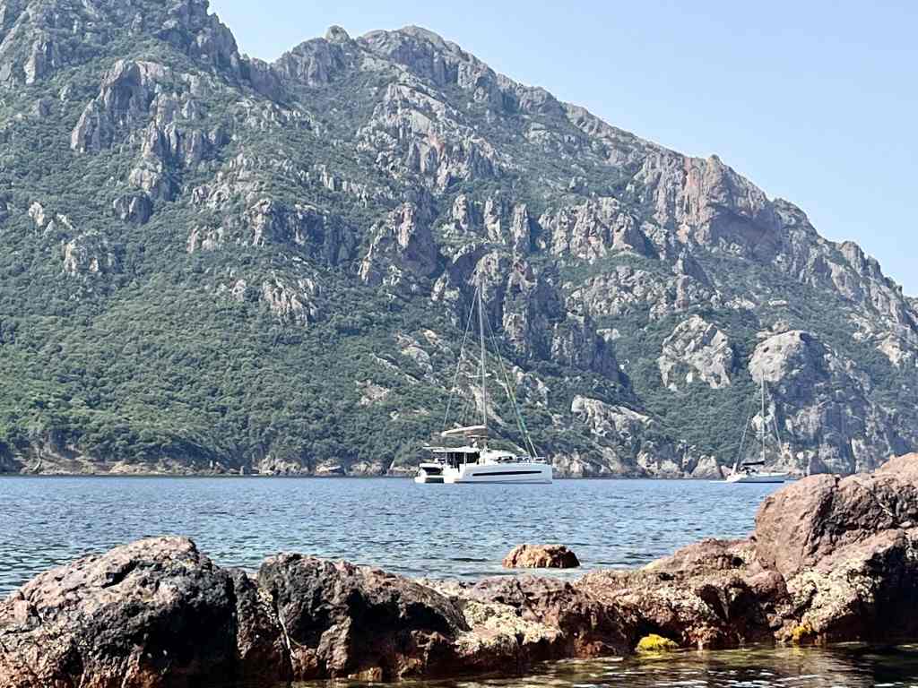 During departure, we were met with squalls of at least 33 knots. The swell was large and the time between waves was short, so this made for a rodeo bull riding day. The wind turned hot then it was completely squirrely, shifting from every direction. The humidity was such that it was nearly impossible to dry one’s hands or feet. To add to the fun, military planes kept coming out of nowhere scaring the heck out of us with their instant deafening noise. You’d have thought they were just one foot overhead. I did a bit of research and determined they were likely L-39 fighter jets. Amazingly, they are an adventure tourist attraction in Corsica!