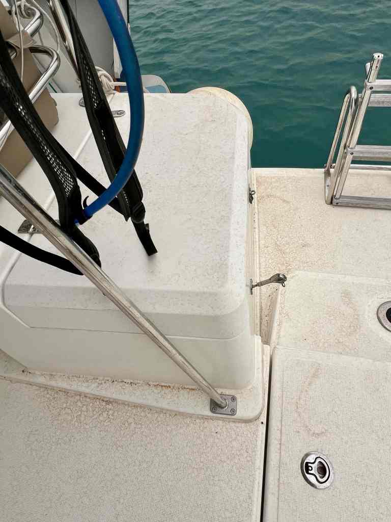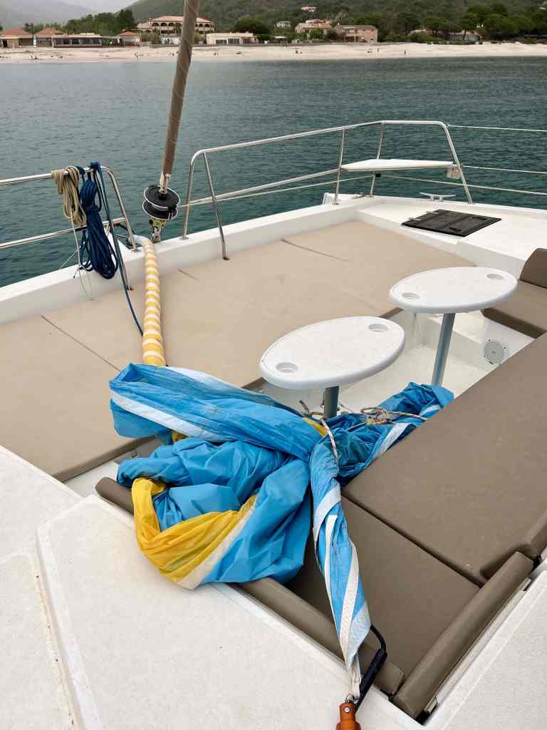 • All of a sudden, our furled screecher sail came loose at the top and was flapping uncontrollably.