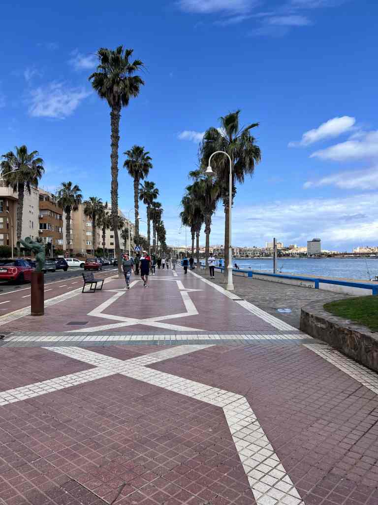 Javier and Juan squashed our hopes of visiting Morocco explaining that the areas directly surrounding Melilla were not that safe and the border could take hours to cross, especially since this is the month of Ramadan. Cities like Fez and Marrakesh would be worth visiting, just not from here. So, we settled into Melilla. History explains that Melilla was conquered by the Spanish in the 15th century. They colonized Morocco and managed to maintain the cities of Melilla and Ceuta when Morocco won its independence in 1956. Melilla and Ceuta are the only remaining pieces of European territory on mainland Africa, so it’s understandable that this is a bit contentious. Morocco would like control of these areas, and migration remains a difficult situation to this day. This is apparent when you walk the seafront promenade to the wire fenced border and see the heavy police presence everywhere around the city.